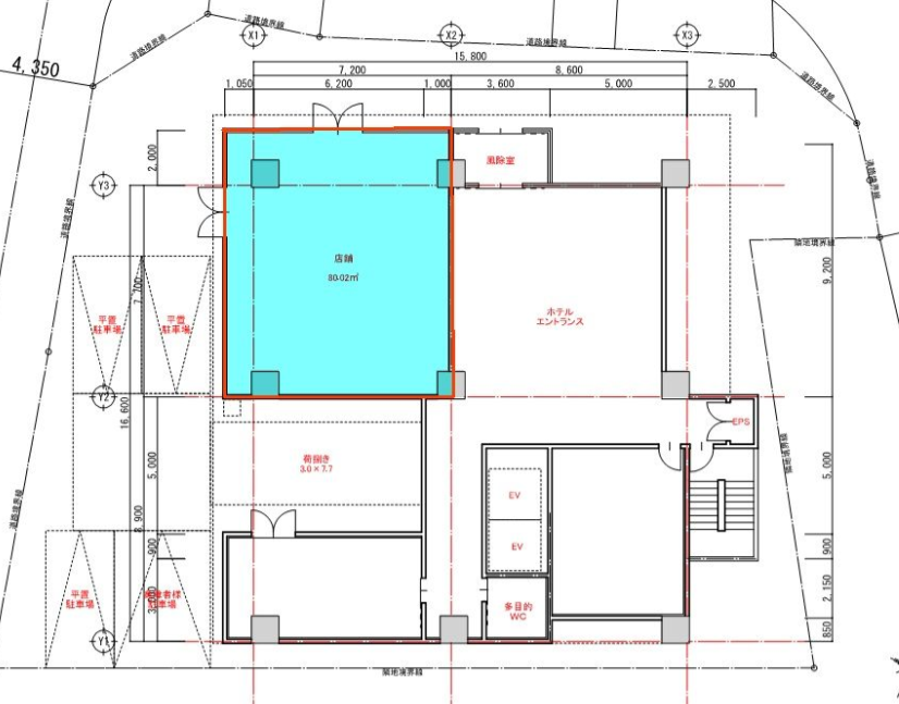 - 【住吉2丁目】櫛田神社前駅徒歩9分、約24.2坪、スケルトン渡し物件賃料 66.55万円 壁芯80.02㎡ / 約24.2坪